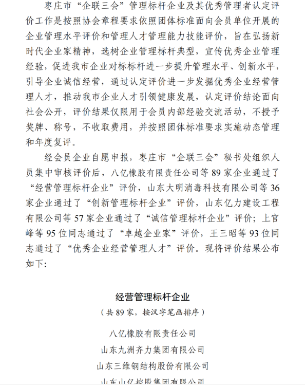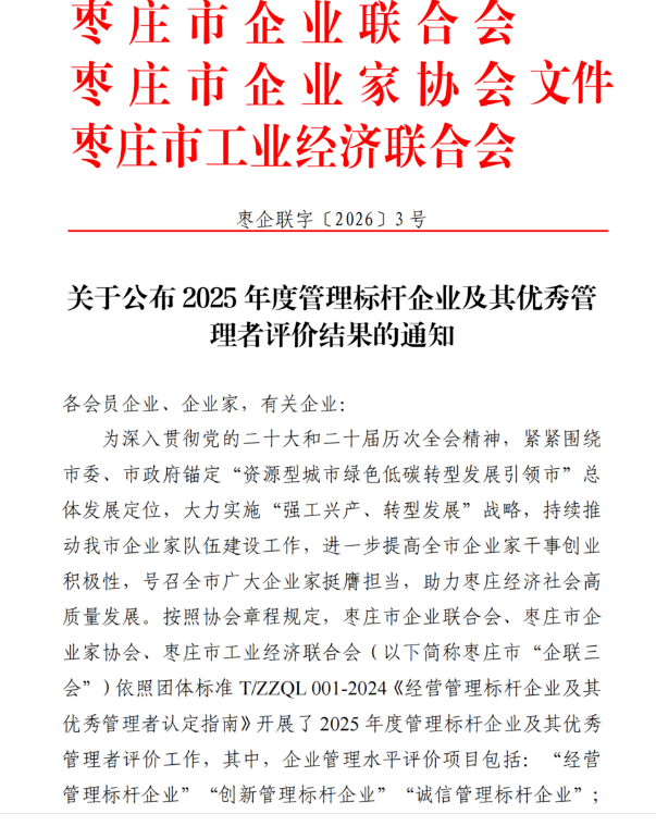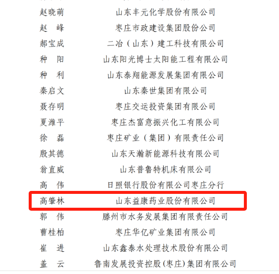 山东益康集团 > 集团新闻集团新闻益康药业、公司董事长分获经营管理标杆企业、卓越企业家殊荣日前,枣庄市企业联合会、枣庄市企业家协会、枣庄市工业经济联合会联合发文,对在2025年度做出突出贡献的企业和企业管理者予以通报表扬。山东益康药业股份有限公司通过“经营管理标杆企业”评价;公司董事长高肇林通过“卓越企业家”评价。 2025年,益康药业认真贯彻落实枣庄、滕州两级市委、市政府提出的“强工兴产、转型发展”攻坚行动,按照既定目标,沉着应对市场挑战,科学调整经营策略,全力以赴保生产、拓市场、抓创新、促转型。生产系统精耕细作,通过优化流程、技能提升,实现降本增效新突破;营销团队迎难而上,以过硬品质和真情服务赢得客户信赖,稳固并拓展了市场版图;研发体系持续攻坚,取得系列重大成果;项目建设扎实推进,产业布局更趋完善;安全生产防线持续筑牢,员工的自主保安能力和安全生产意识不断增强;企业管理与文化软实力同步提升,荣获多项国家级、省级崇高荣誉。